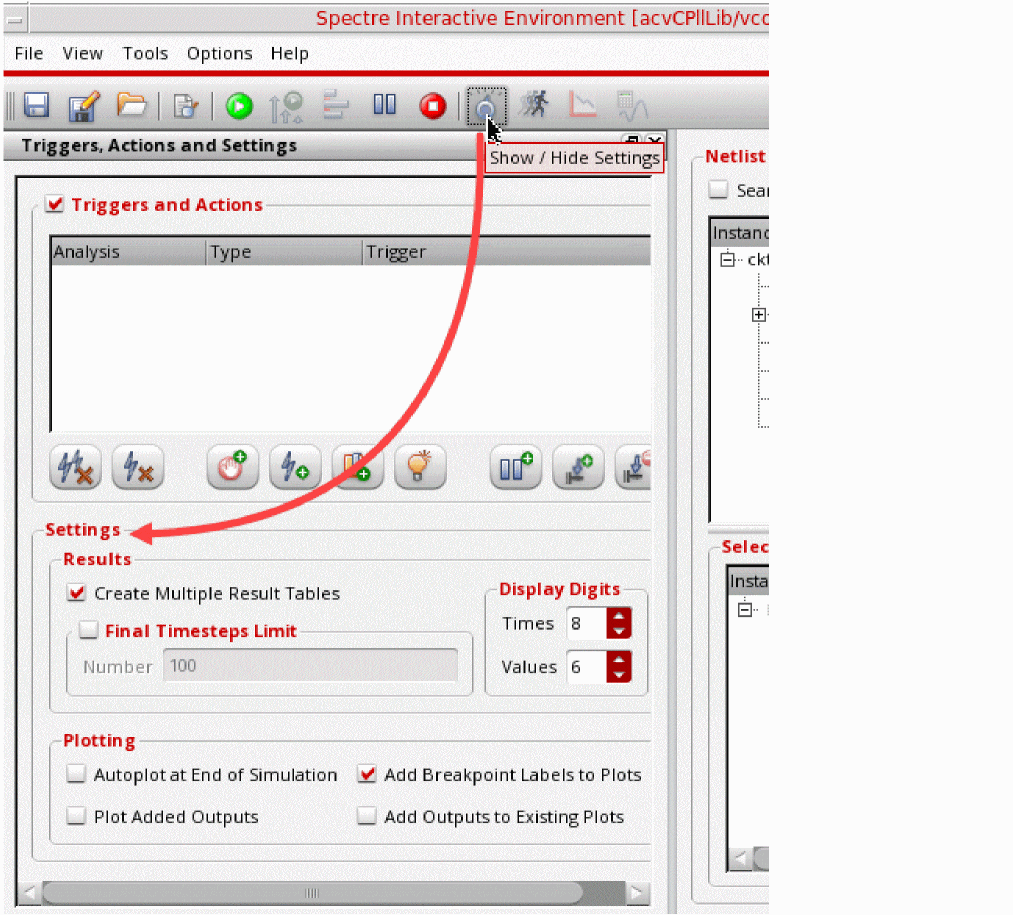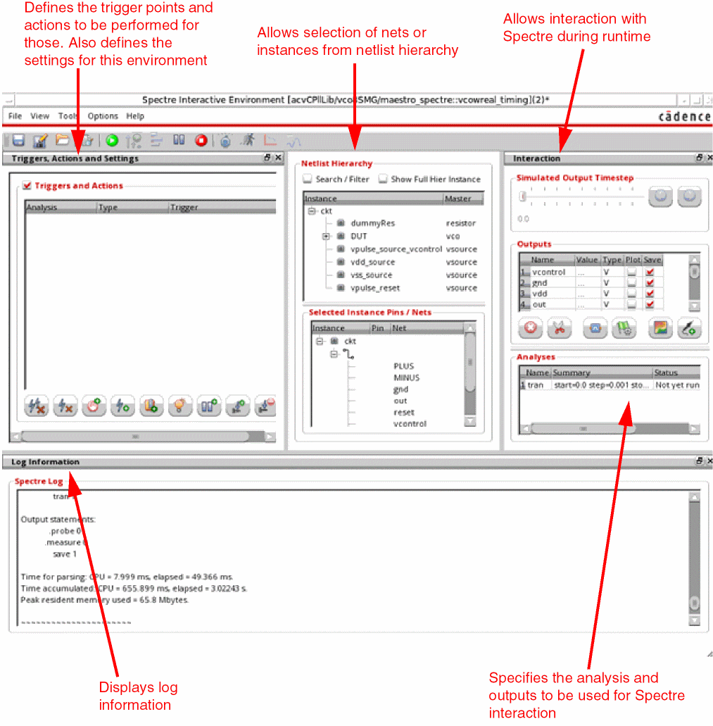 For details about the user interface, refer to Introducing the Spectre Interactive Environment User Interface.