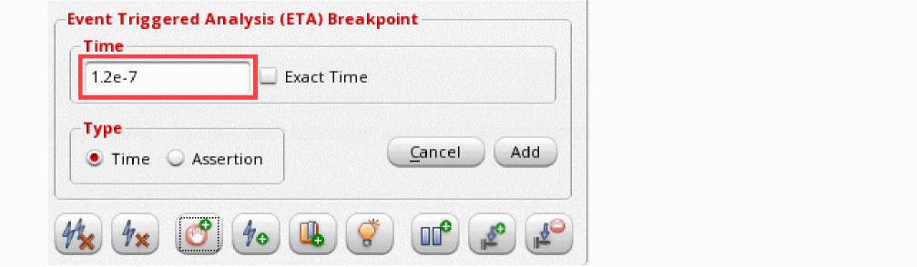 Select Exact Time if you want to add a breakpoint at exactly the same time. For example, if you specify the stop time as