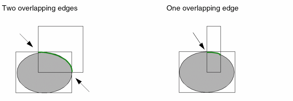 The arc is determined by calculating the overlap or the interception between the ellipse and arc bBox given by the caller. In order to correctly determine the intersection of the given bBoxes, overlapping edges between the bBoxes are required.