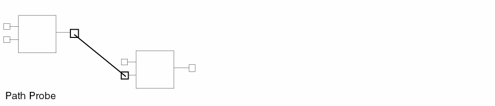 The path probe draws a flight line between two user specified terminals. These terminals do not have to be on the same net. This also means that the terminals do not have to be physically connected.