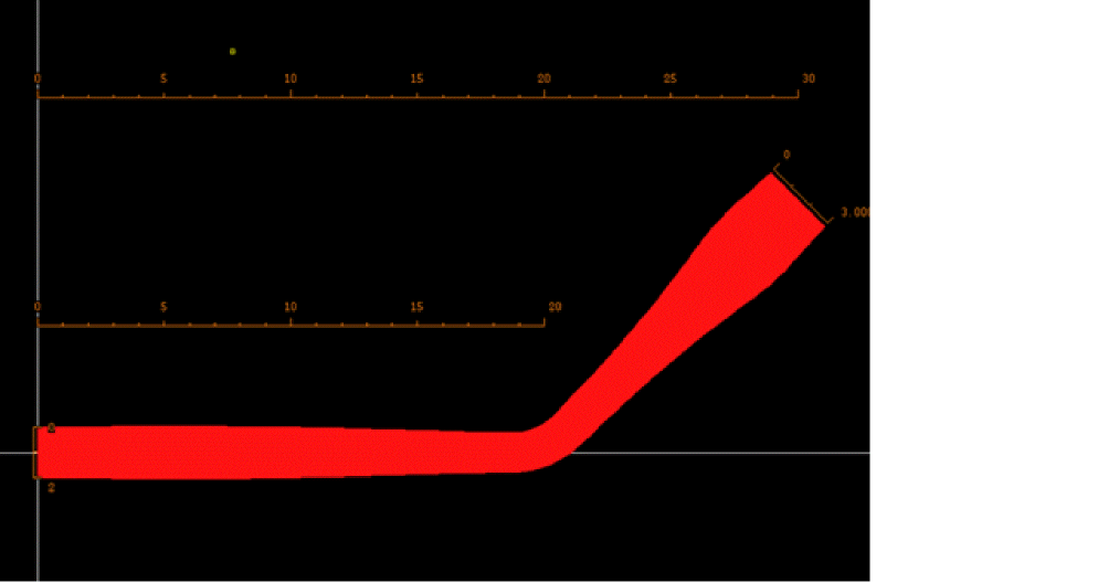 First point of the connector is set to the width at the spline point with the smallest arc length that is larger than the minimum arc length.