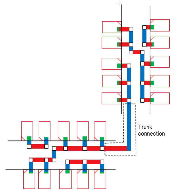 A vertical and a horizontal trunk are connected together using a trunk connection.