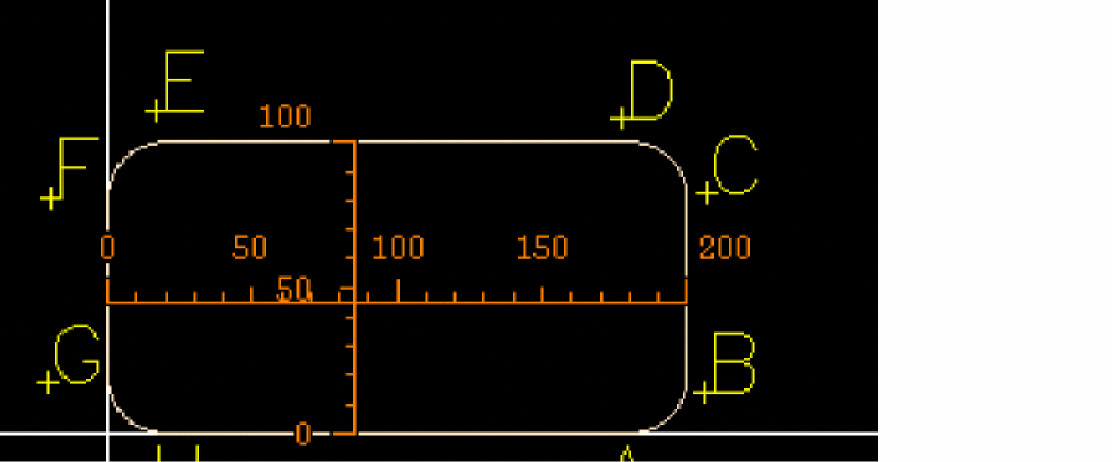 Considers that the center of the holes is known, therefore the explicit arc form is used. Illustrates how the explicit arc points are calculated from center point and radius in hole2.