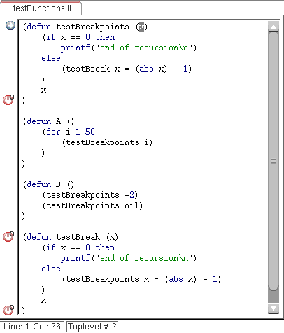 (defun testBreakpoints (x)