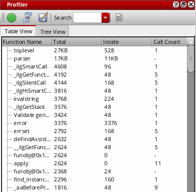 to stop profiling. The profile summary report appears in the Profiler window. The total memory allocated (in bytes) by the profiler displays at the bottom of the summary page. You can check the memory allocated to a particular function by specifying the function name in the Search drop-down list box.