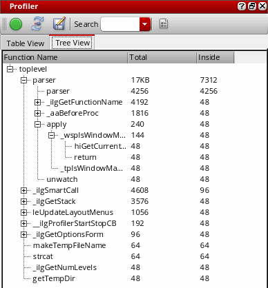 The profile summary report is available in two formats – Table View or Tree View. Click the related tab to switch the view of the profiler summary report.