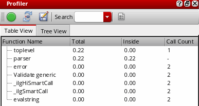 to stop profiling. The profile summary report appears in the Profiler window. The total CPU time (in seconds) taken by the profiler is displayed at the bottom of the summary page. You can check the CPU time taken by a particular function by specifying the function name in the Search drop-down list box. To repeat the last search, press Enter.