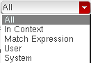 If you select the In context, Match Expression, or Match Prefix options, a combo box appears below the Functions drop-down. Specify an appropriate context name, regular expression, or prefix name in the box and press Enter.