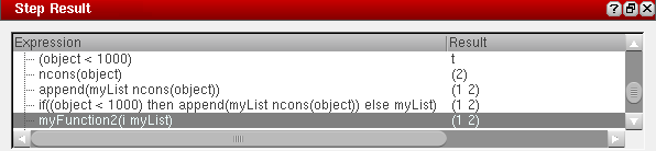 to step through your code, an expression is executed, and the Step Result assistant is updated with the evaluated expression and its value.