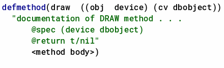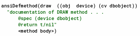 In SKILL++ methods, the inline documentation strings are added after the specializer list. For example: