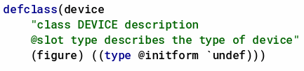 In SKILL++ classes, the inline documentation strings are added after the slot list. For example: