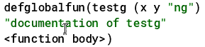 Inline documentation strings are supported for the following SKILL functions and classes: defun, procedure, nprocedure, defmethod, defgeneric, defglobalfun, globalProc, defclass, and ansiDefmethod.