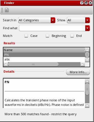 Start the Finder assistant by choosing Window – Assistants – Finder. The Finder assistant displays.