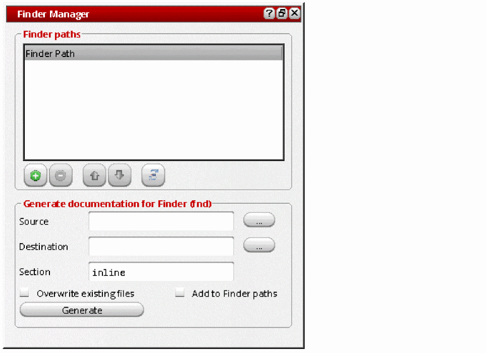In the Finder paths section, specify additional directories for Finder database files. When you launch the Finder assistant, Finder will look for finder database files (