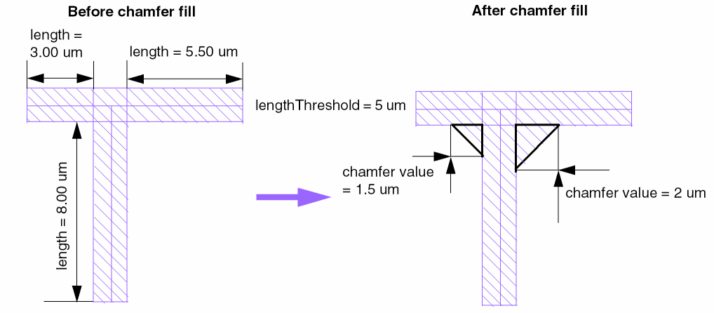 lengthThresholdvalue (5 microns), the chamfer fill value will be 2 microns.