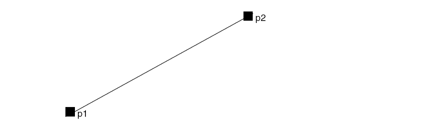 Sets infix mode on and bind the s key to the procedure myEnterSegment. Type the s key in a Schematics window at location p1. Because of infix mode, p1 is accepted as the first point for the enterSegment call. The rubberbanding line immediately appears between p1 and the cursor location.