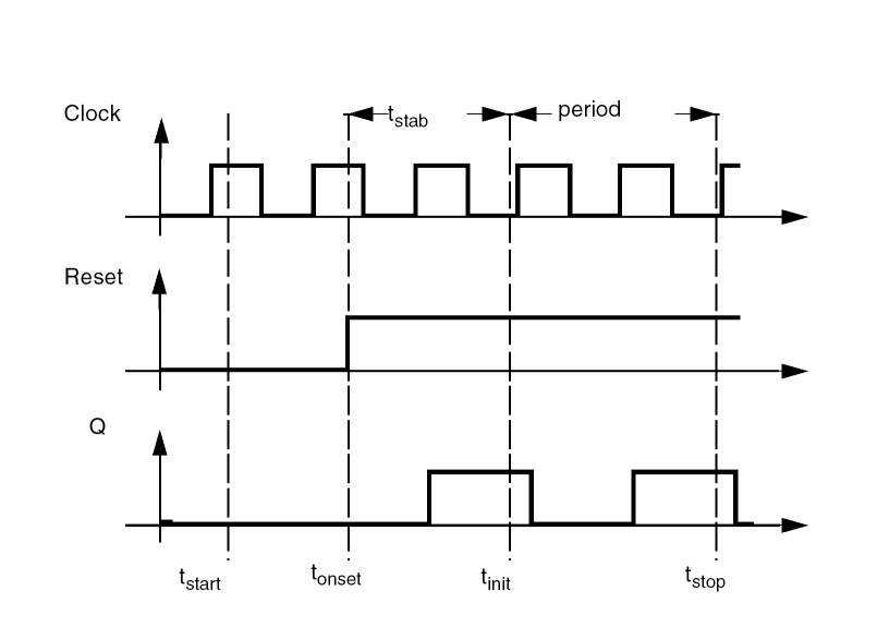The initial transient analysis provides a flexible mechanism to direct the circuit to a particular steady-state solution you are interested in and to avoid undesired solutions. Another use of the initial transient simulation is to help convergence by eliminating large but fast decaying modes that are present in many circuits. For example, in the case of driven circuits, consider the reset signal in Figure 2-1.