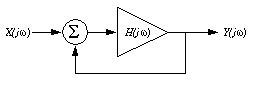To better understand this phenomenon, consider the feedback oscillator shown. The loop gain of the oscillator is H(jω). X(jw) is taken to represent some perturbation stimulus and Y(jω) is the response of the oscillator to X. The Barkhausen condition for oscillation states that the effective loop gain equals unity and the phase equals 360 degrees at the oscillation frequency ω0 [clarke-hess]. The gain from the perturbation stimulus to the output is