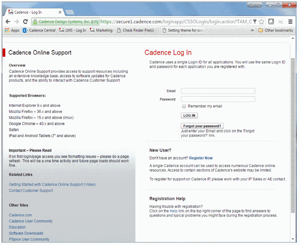 Figure 1-1 Cadence Online Support Website