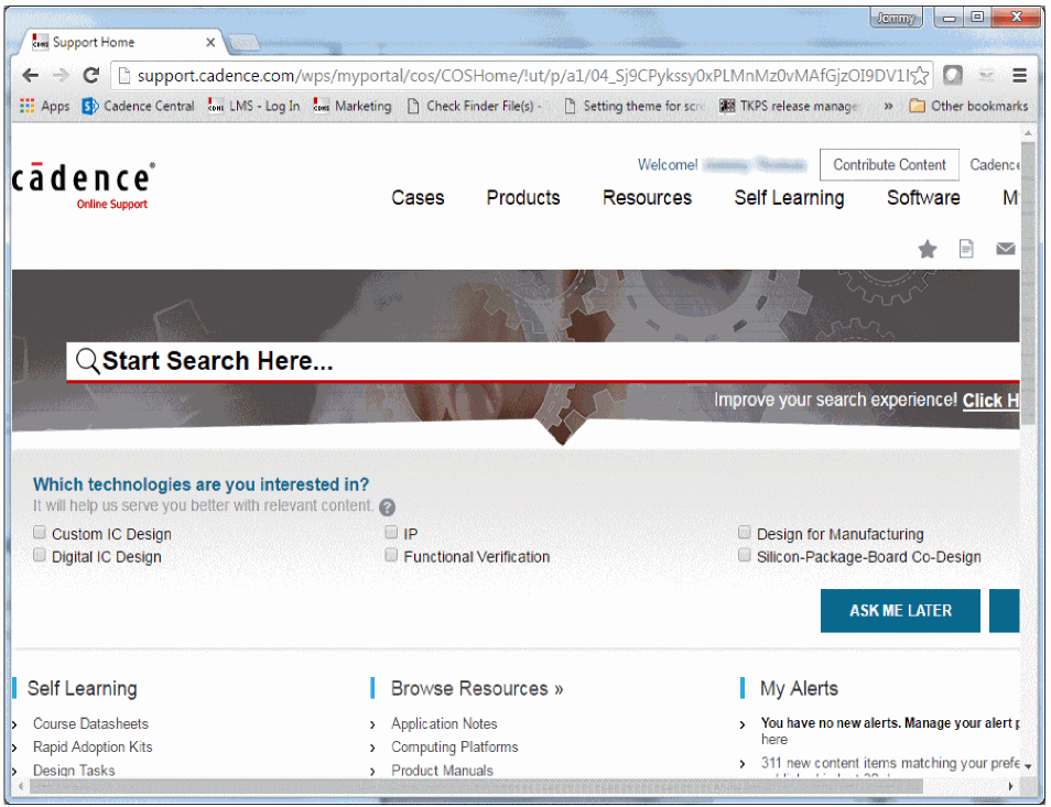 Figure 1-2 Cadence Support Home Page