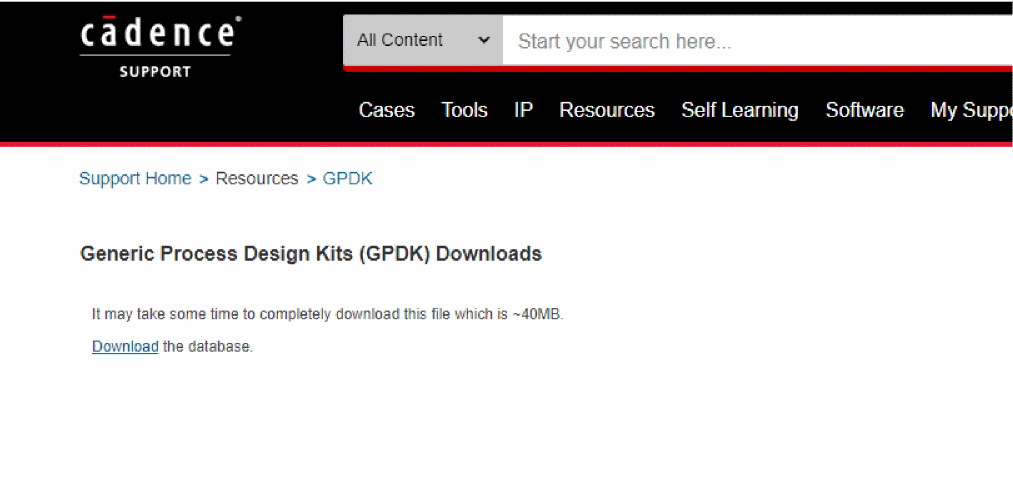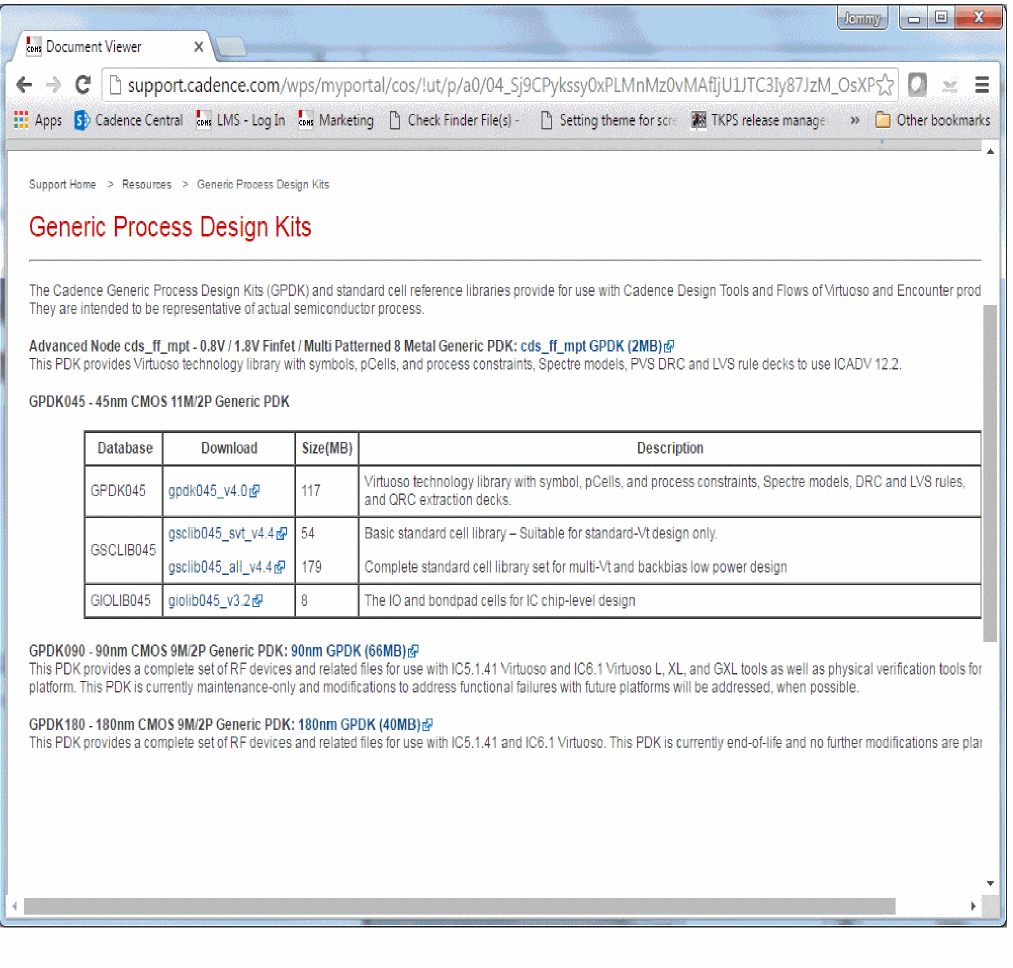 Select Resources - GPDKs. The Generic Process Design Kits Web page is displayed, as shown below.