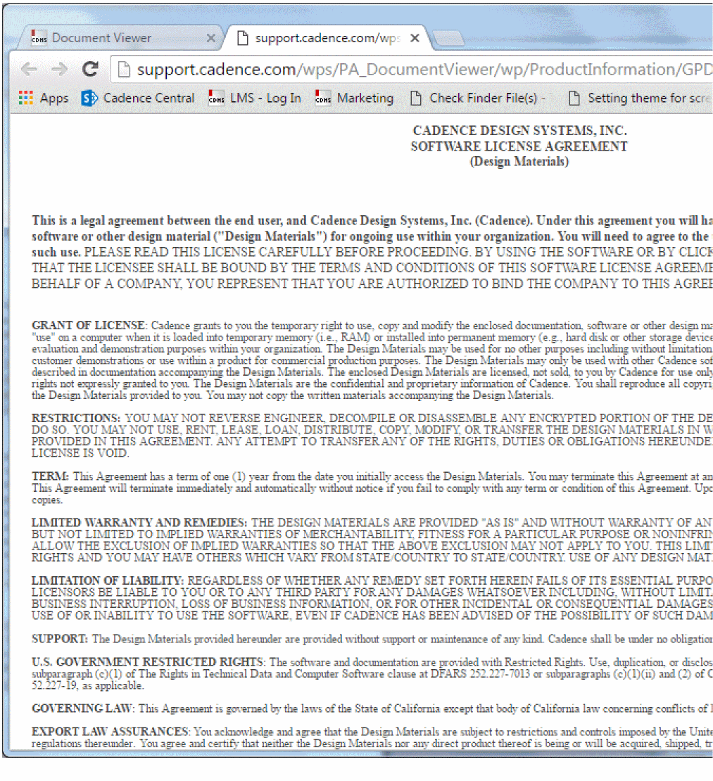 Click the 180nm GPDK (40MB) link. The Software License Agreement page is displayed, as shown below.