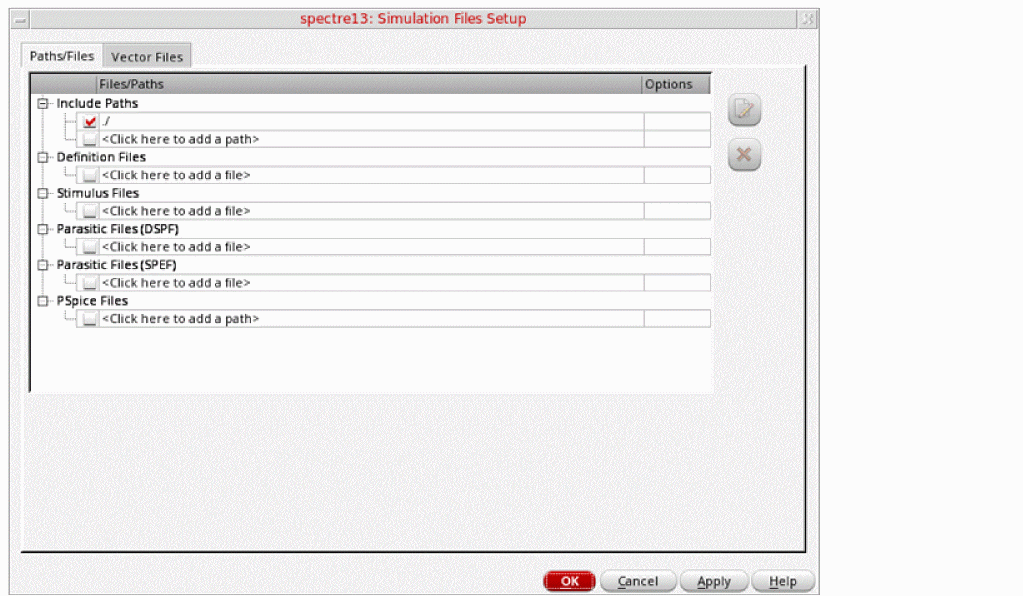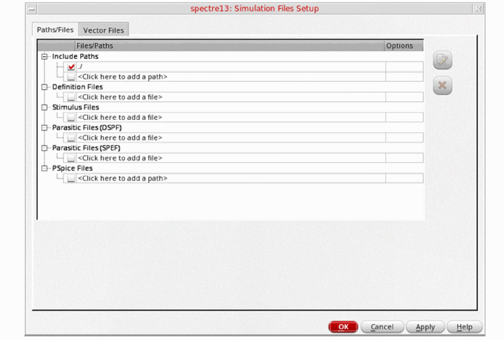 In ADE Explorer, choose Setup - Simulation Files. The Simulation Files Setup form is displayed.