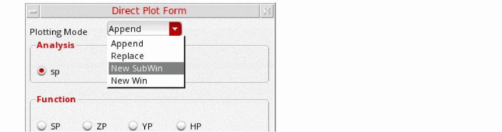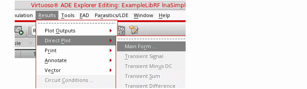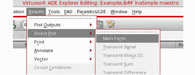 In ADE Explorer, select Results - Direct Plot - Main Form. Alternately, you can click the Direct Plot icon from the schematic window.