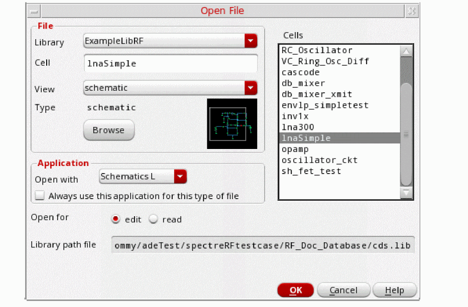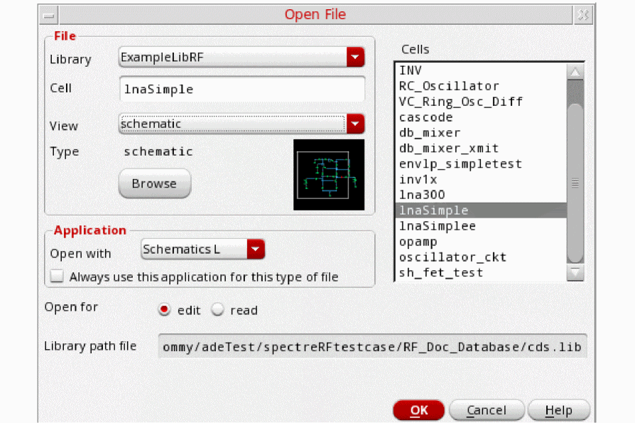 - Choose lnaSimple from the Cells list box.