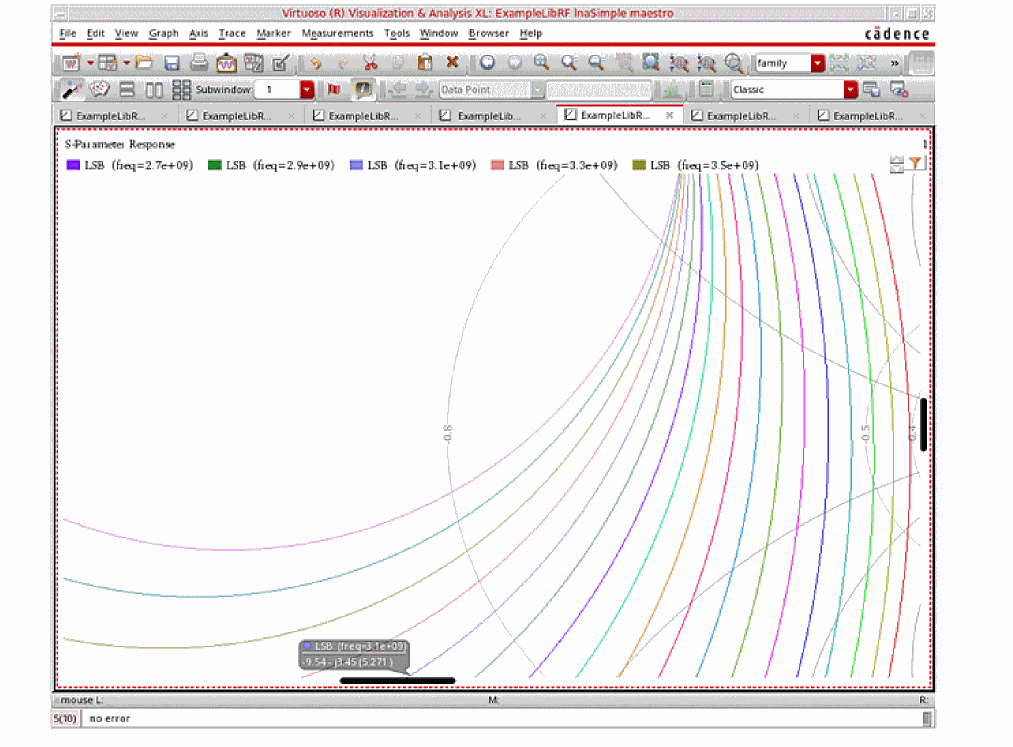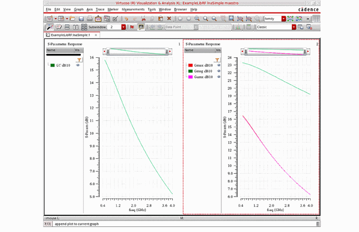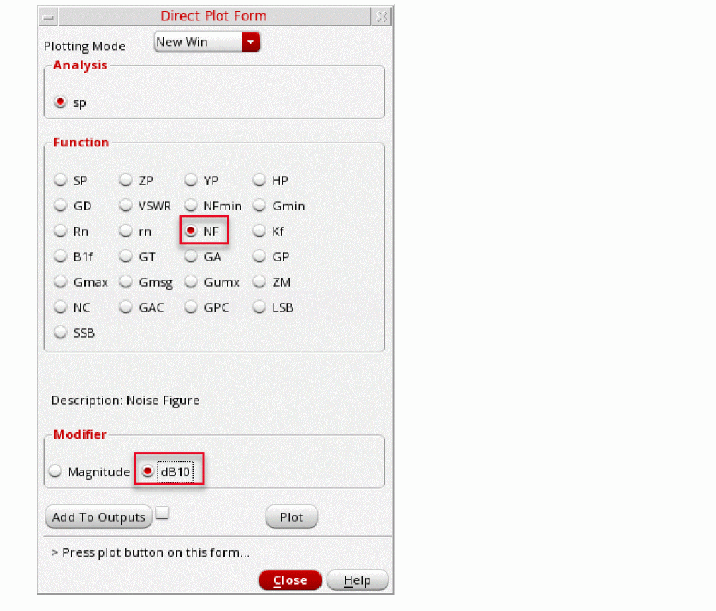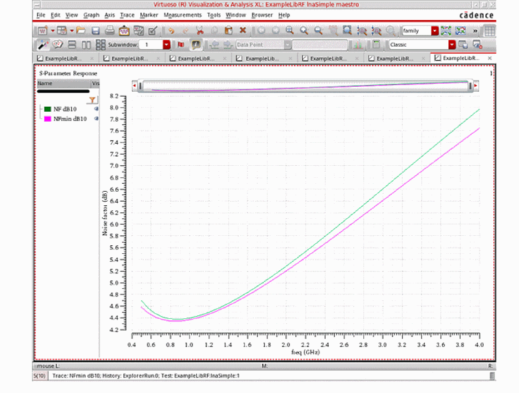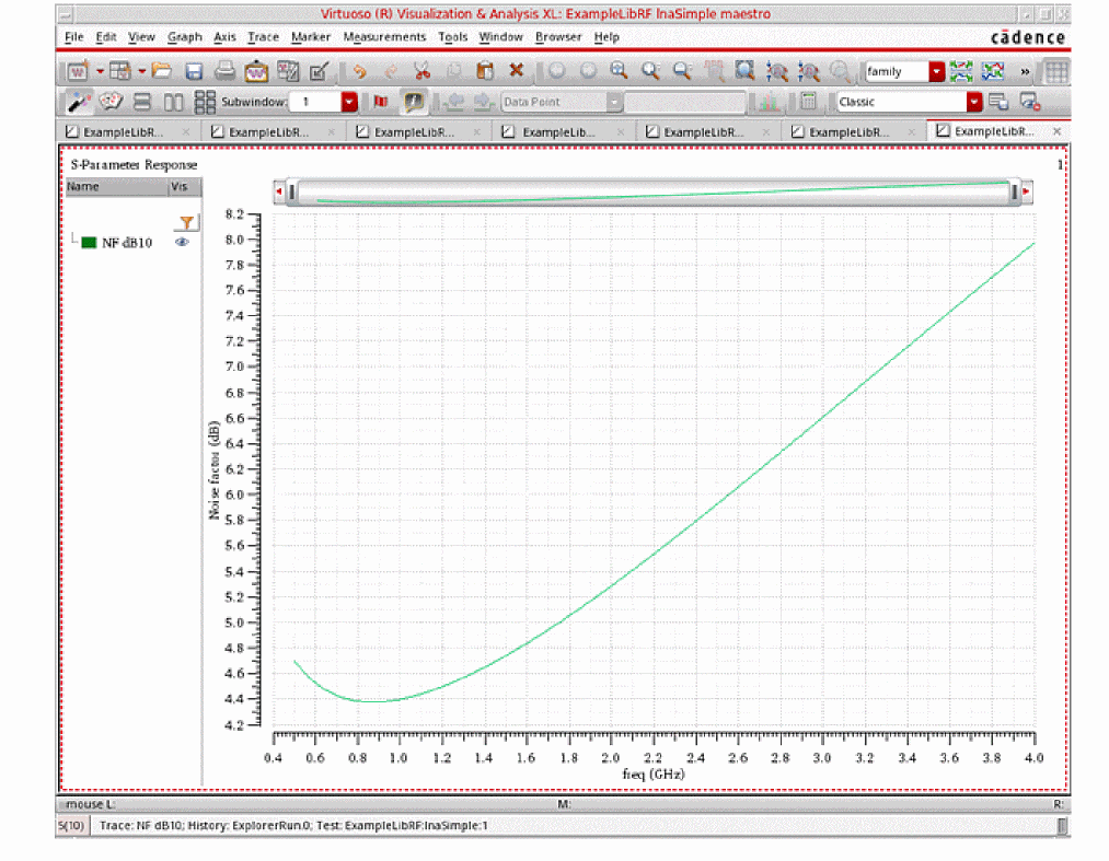 For more information on simulating low noise amplifiers, please refer to the chapters in the Virtuoso Spectre Circuit Simulator and Accelerated Parallel Simulator RF Analysis User Guide and the Spectre Circuit Simulator RF Analysis Theory guide.