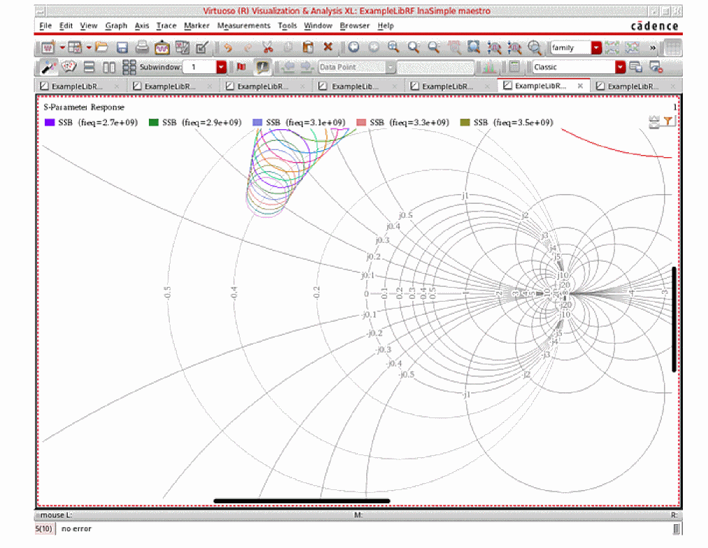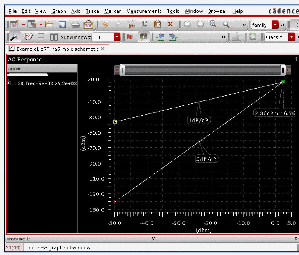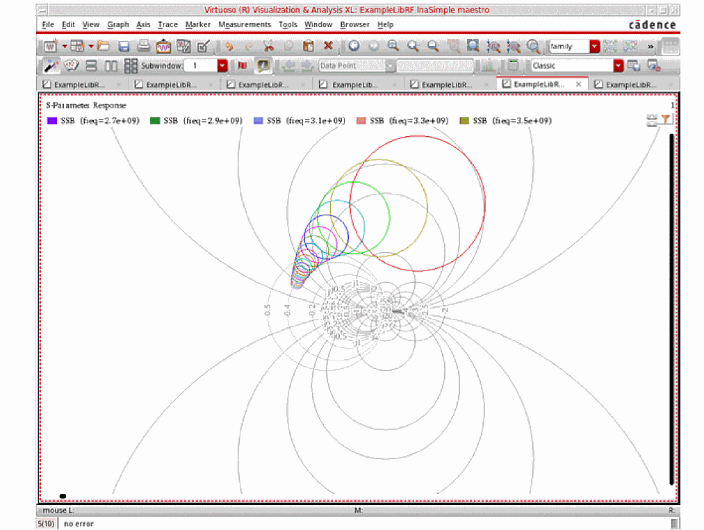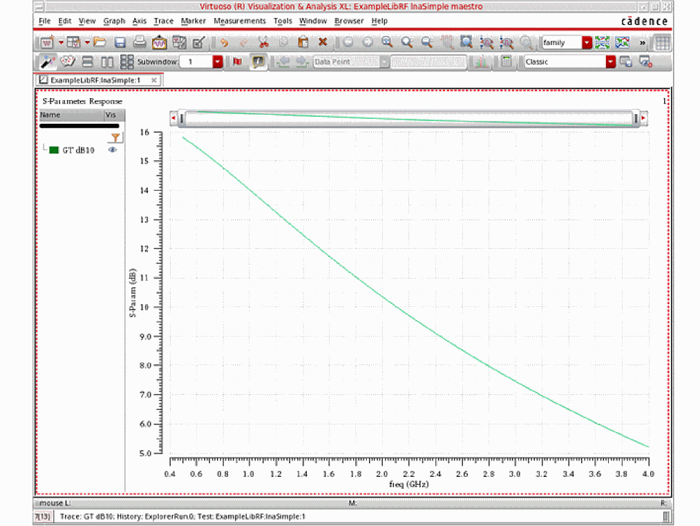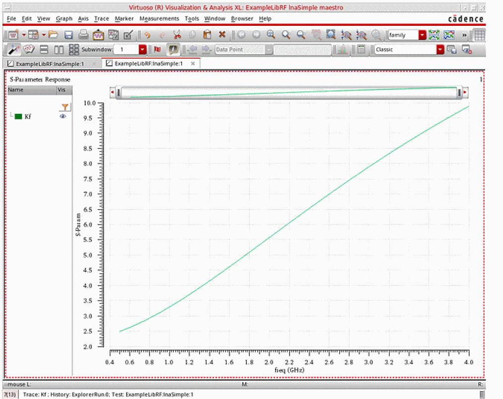 For more information on simulating low noise amplifiers, please refer to the chapters in the Virtuoso Spectre Circuit Simulator and Accelerated Parallel Simulator RF Analysis User Guide and the Spectre Circuit Simulator RF Analysis Theory guide.