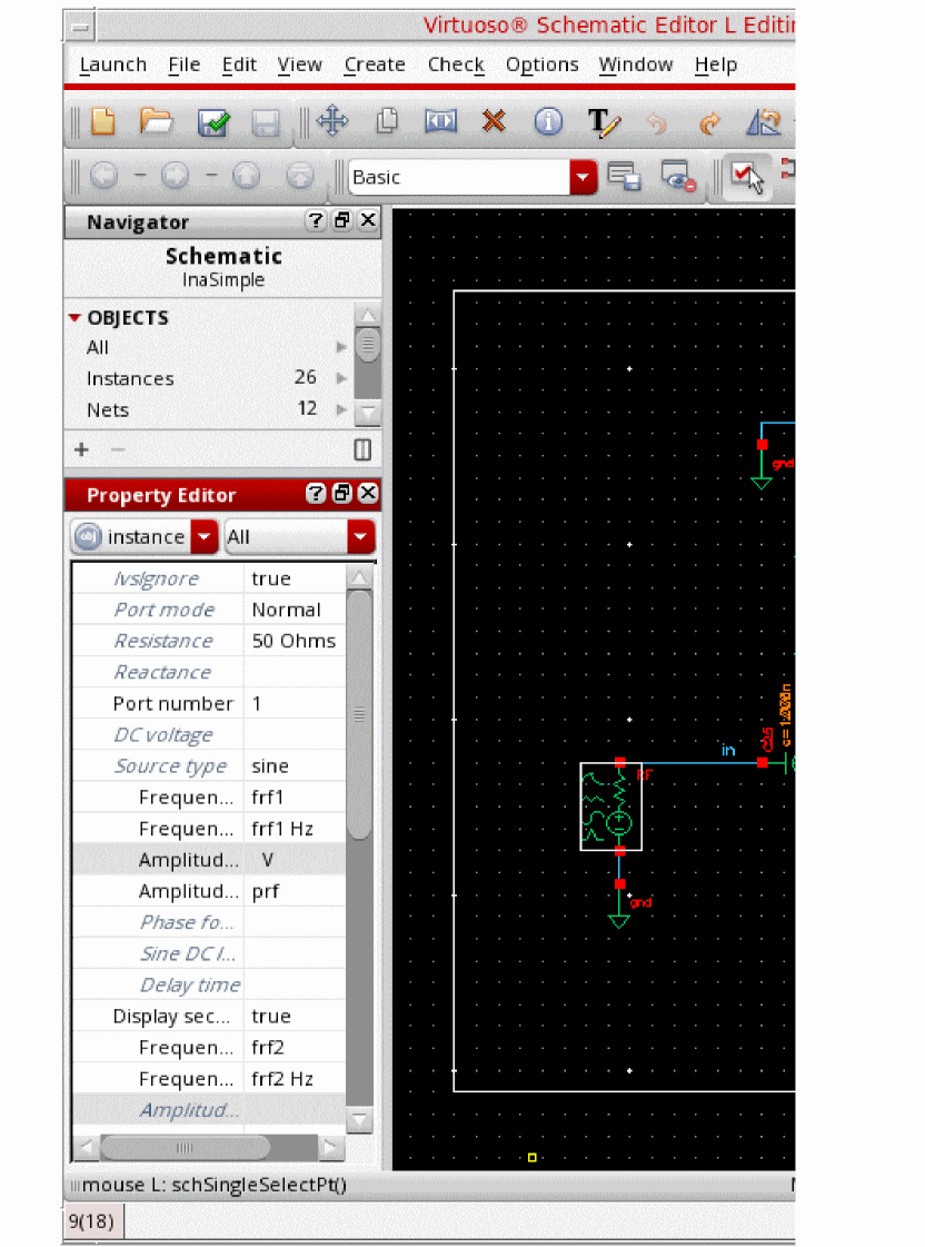 Opening the lnaSimple Circuit in the Schematic Window