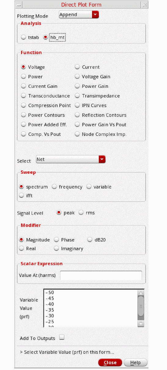 .hb_mt. It refers to multitone harmonic balance. - In the Function Section, select IPN Curves.