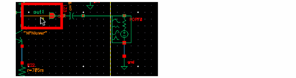 Select the out1 node on the right side of the schematic
