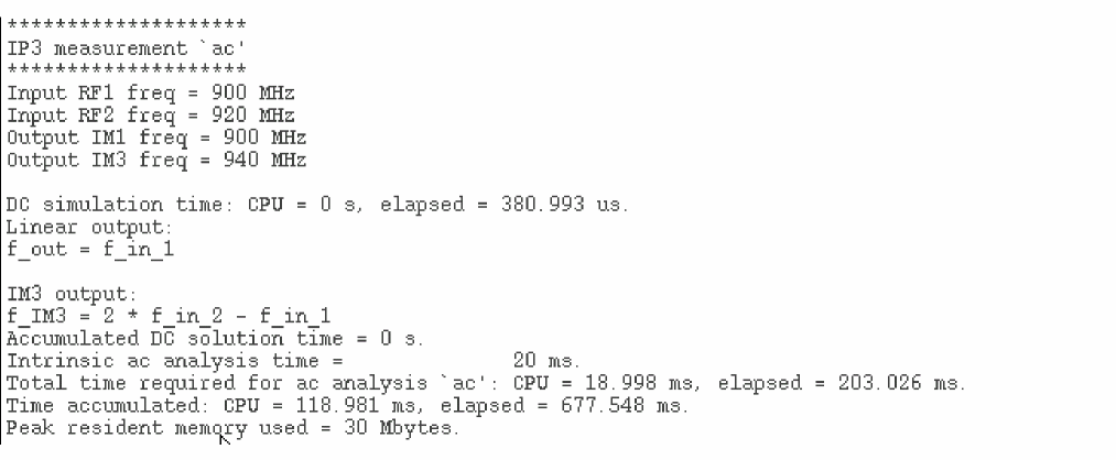 Note that the simulation time is faster than using two tone hb analysis to simulate rapid IP3.