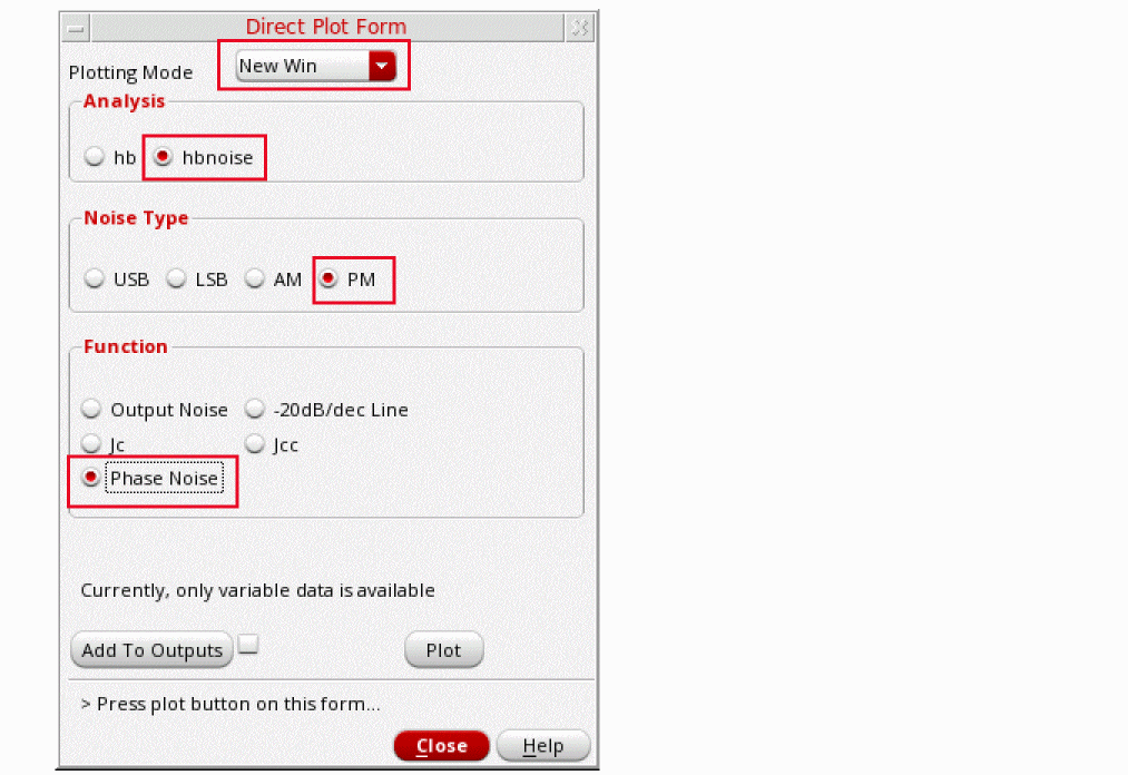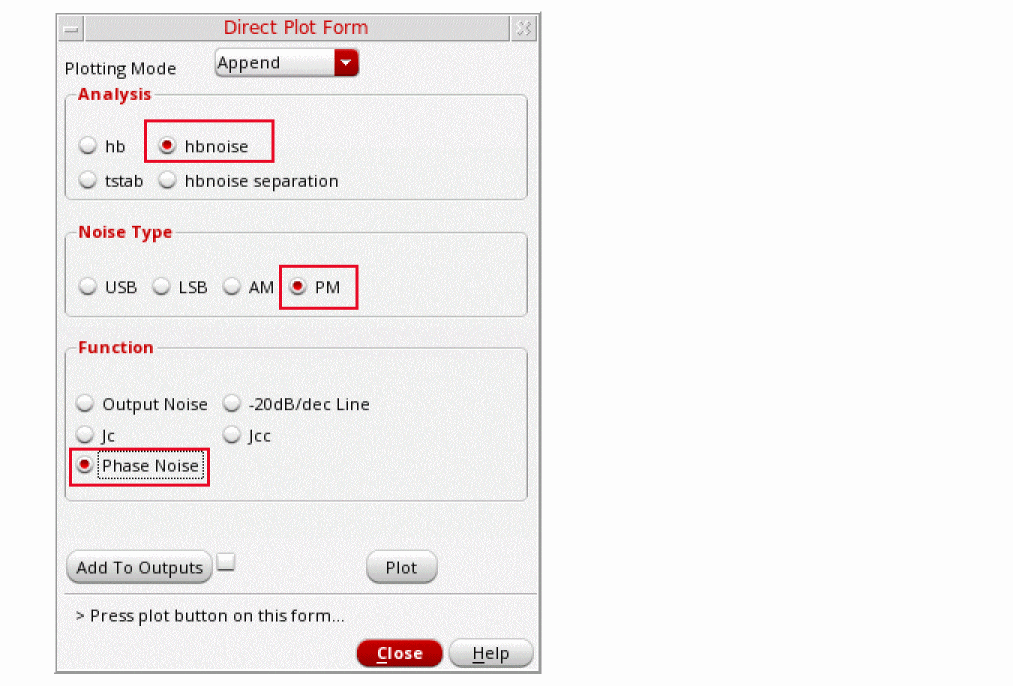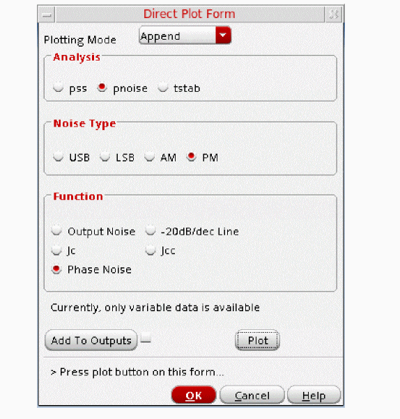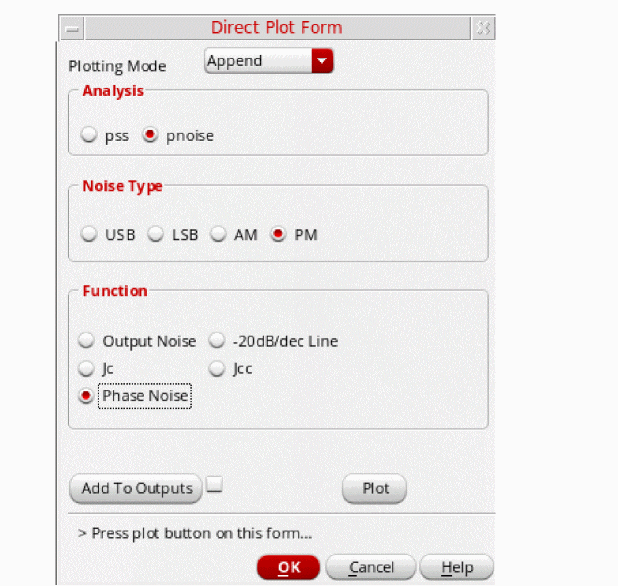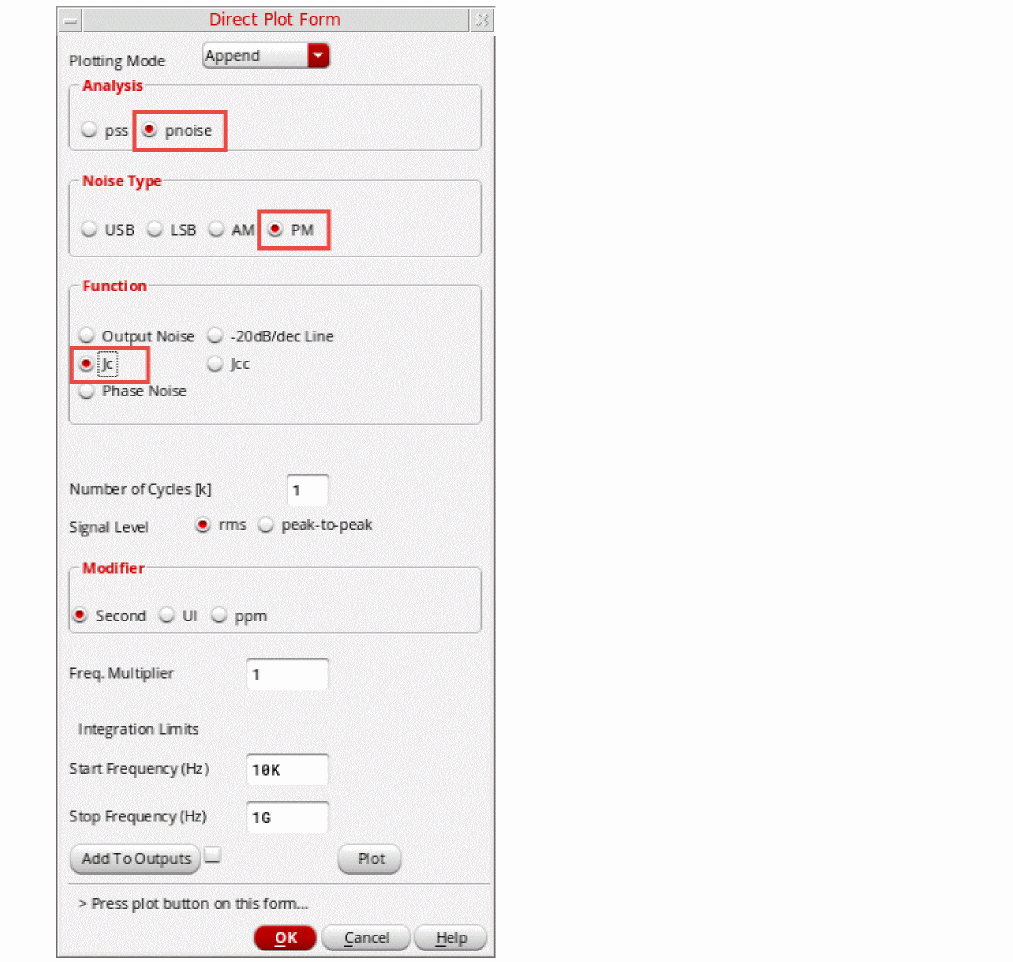 Figure 3-191 Direct Plot pnoise jitter Jc Setup