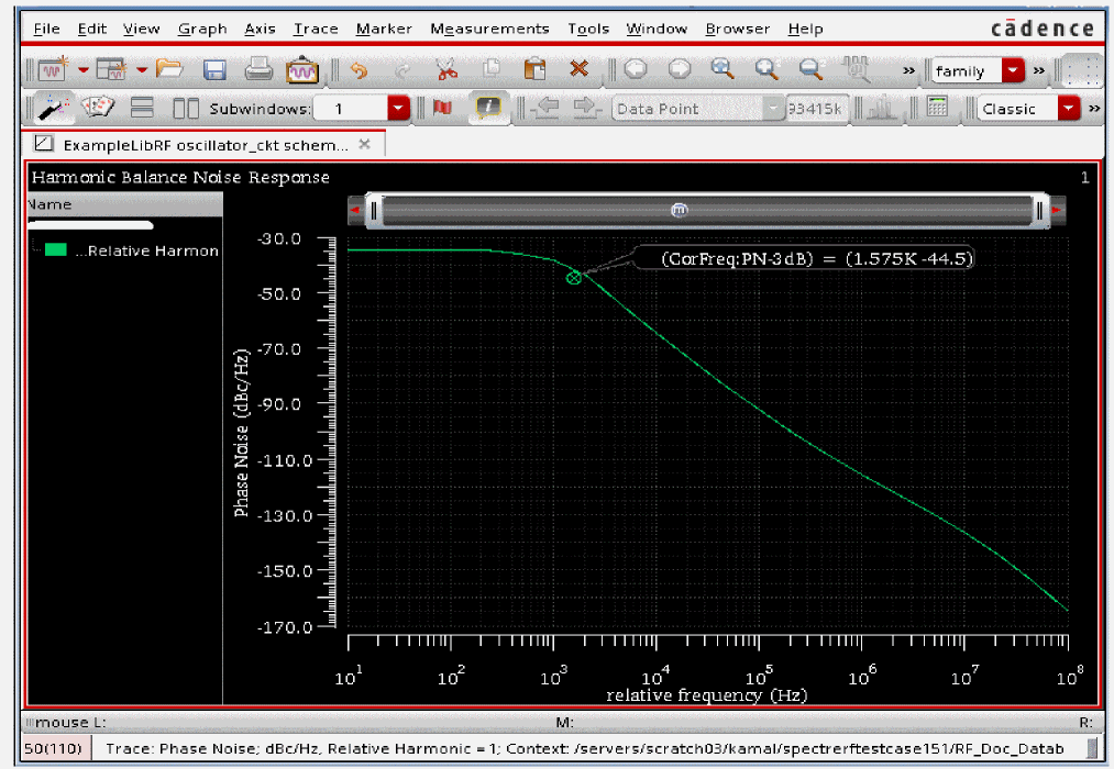 This will plot the Single Sideband Phase Noise vs. Relative Frequency graph, as shown below:
