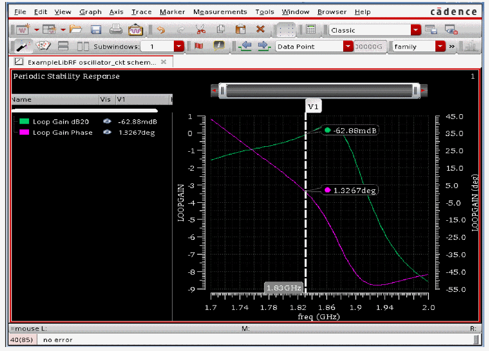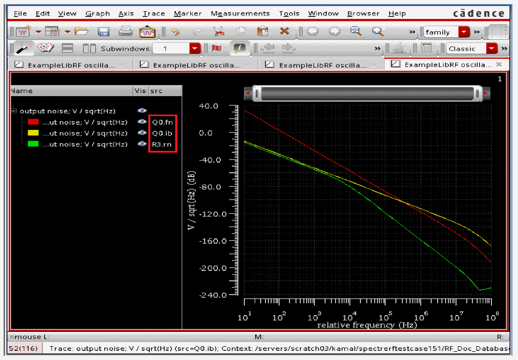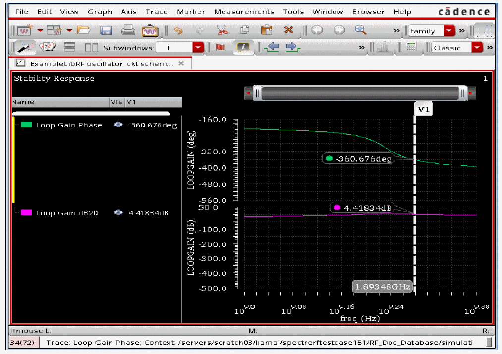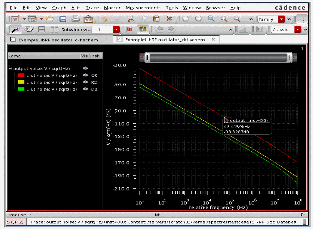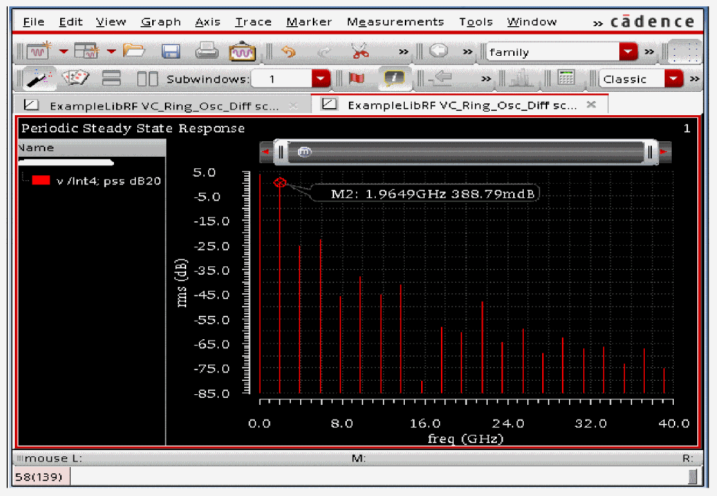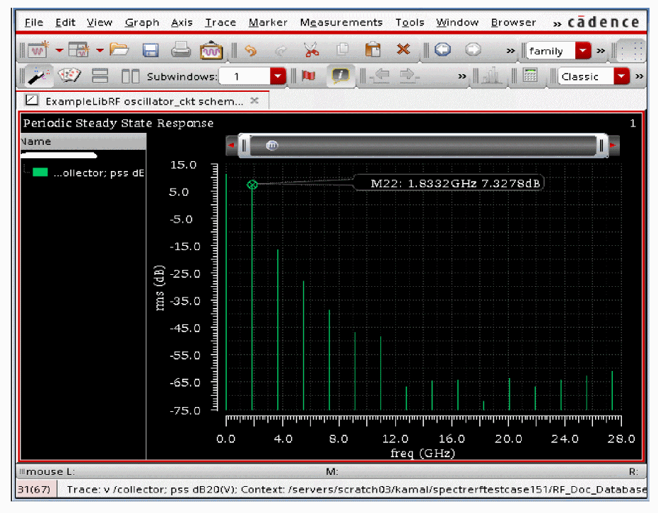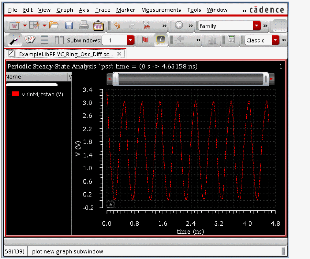 See Oscillators and Autonomous PSS Analysis in the Spectre Circuit Simulator RF Analysis Theory for more information on oscillator simulation. In addition to this you may also refer to Spectre Circuit Simulator and Accelerated Parallel Simulator RF Analysis User Guide.