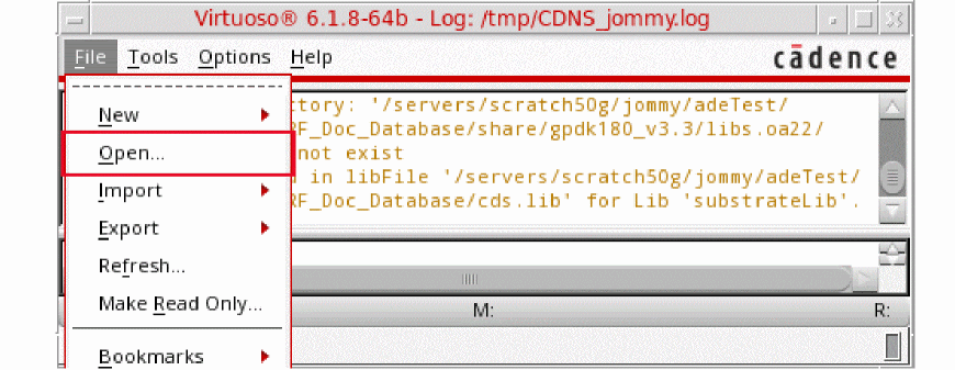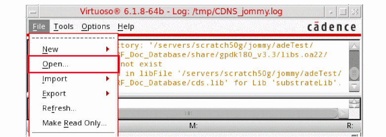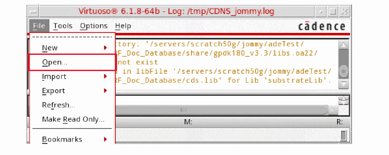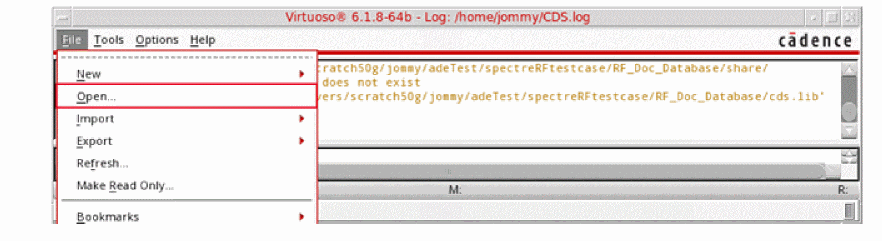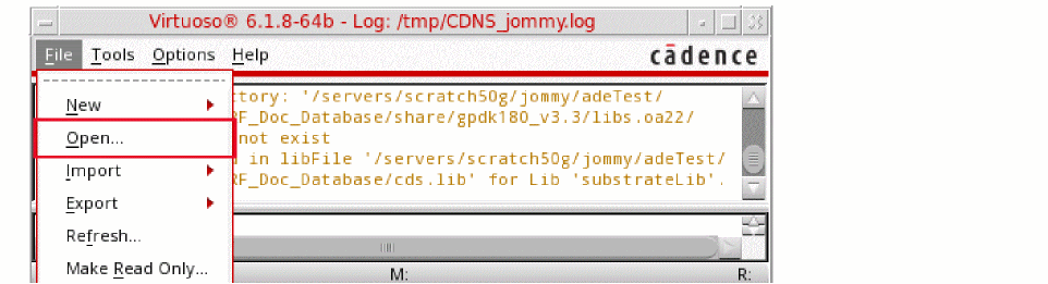 Figure 3-2 Virtuoso CIW Window - Opening CellviewThe Open File form is displayed.