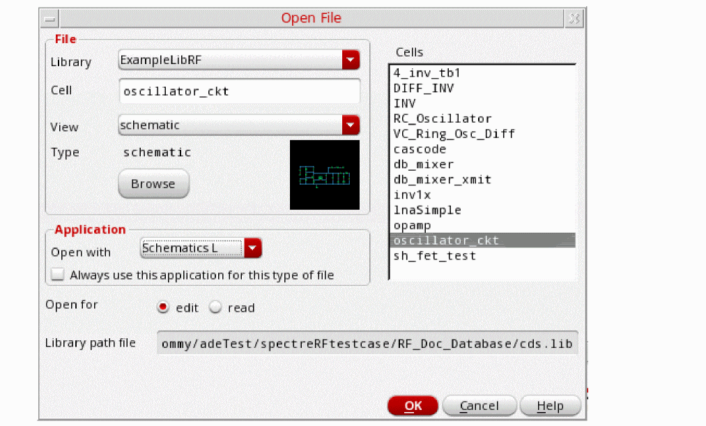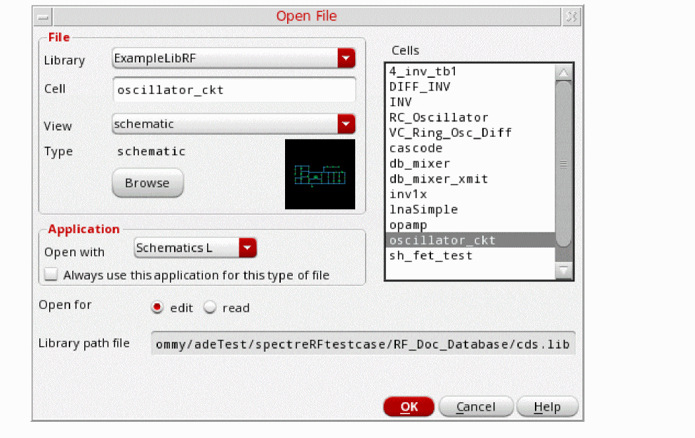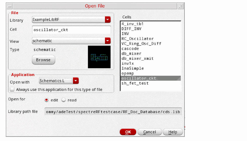 - In the Cells list box, choose oscillator_ckt.