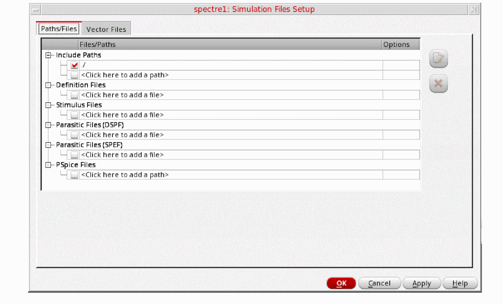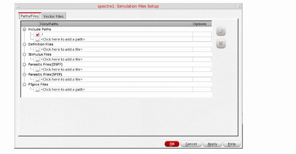 ./by clicking in the Include Paths section. The Simulation Files Setup form should look like the following: