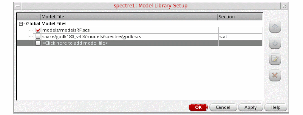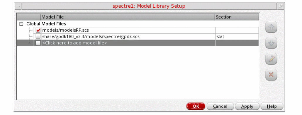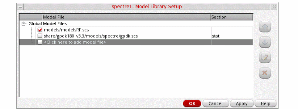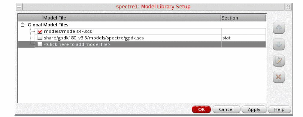 Figure 3-12 Model Library Setup FormYou can also browse to modelsRF.scs file.