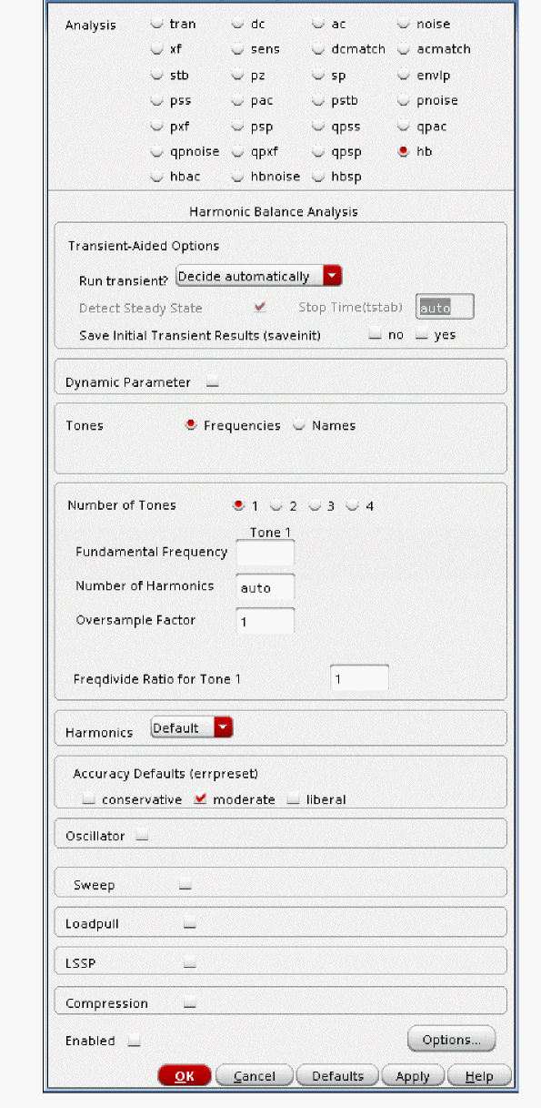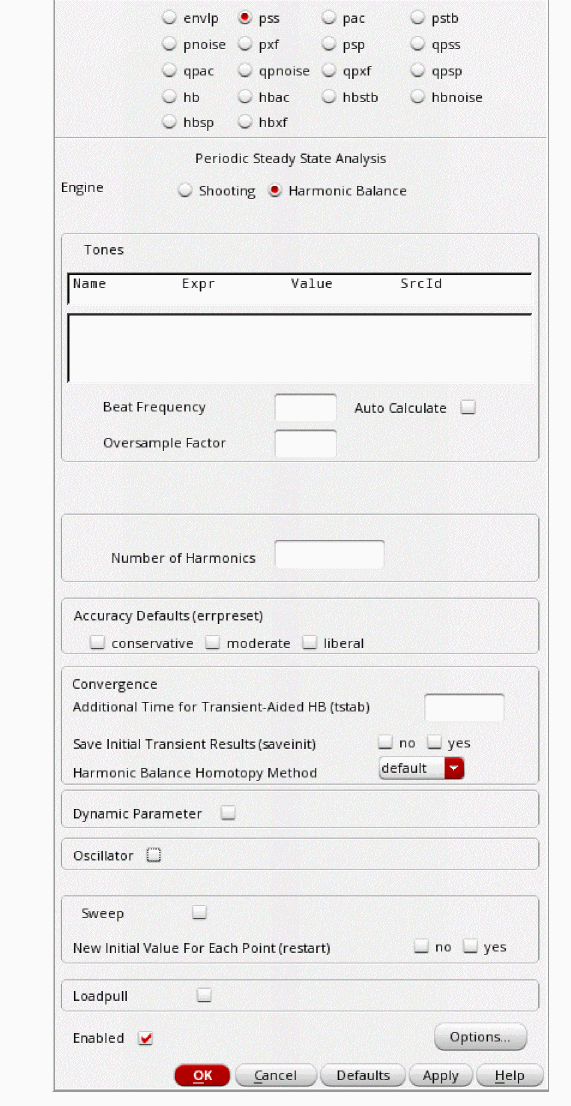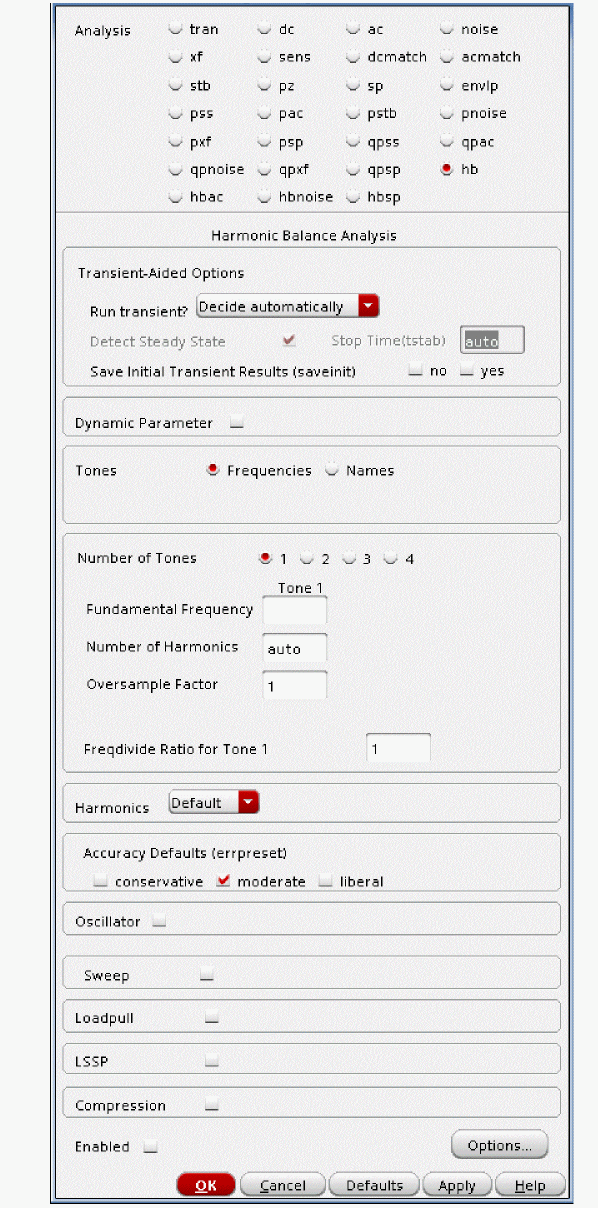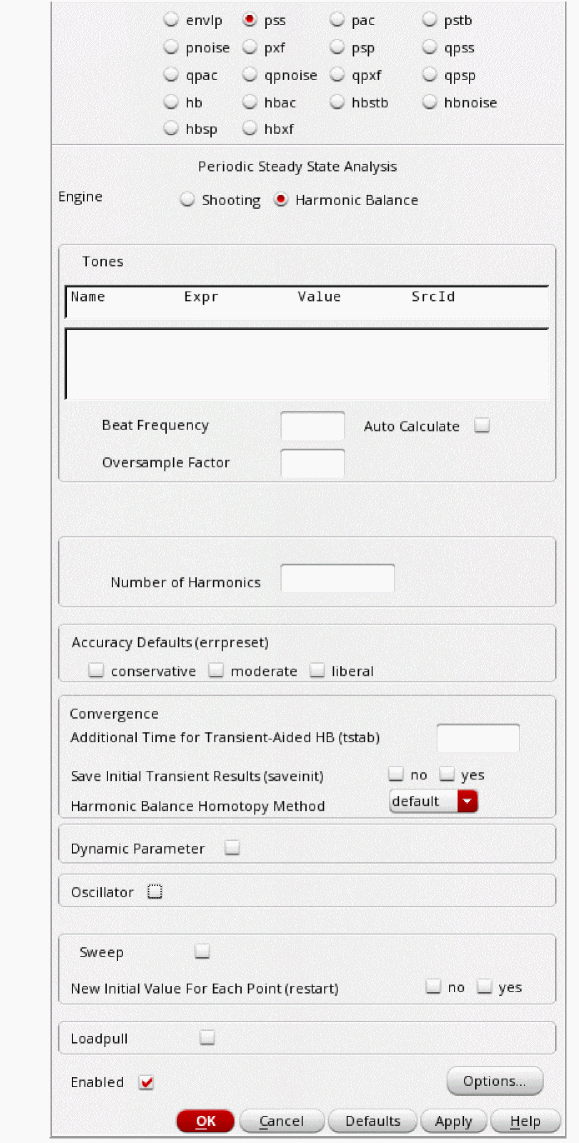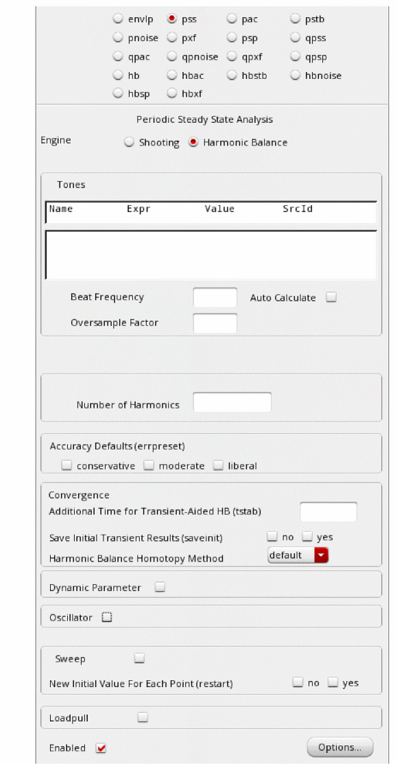 - Select Harmonic Balance as Engine.