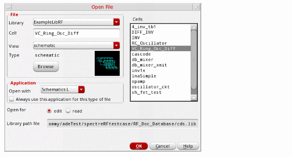 Figure 3-3 Open File Form to open the oscillator_ckt cell’s Schematic View