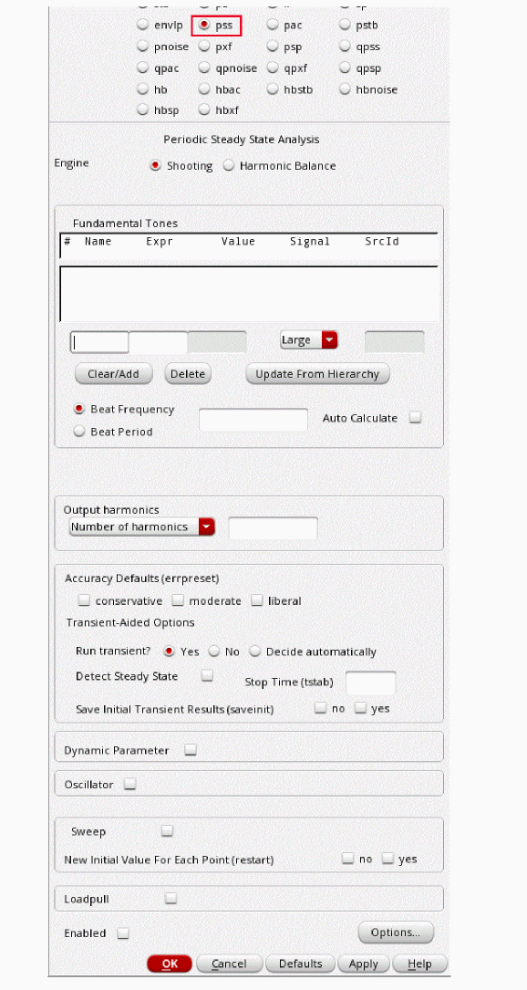 See Oscillators and Autonomous PSS Analysis in Spectre Circuit Simulator RF Analysis Theory for more information on the autonomous PSS analysis algorithm.