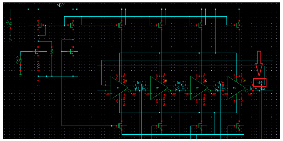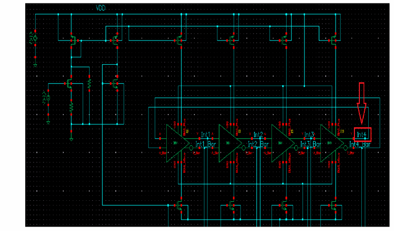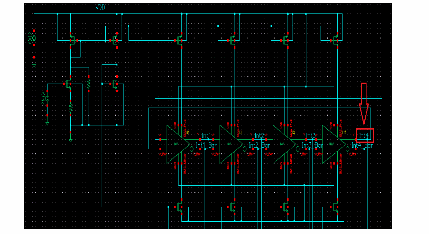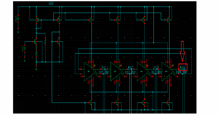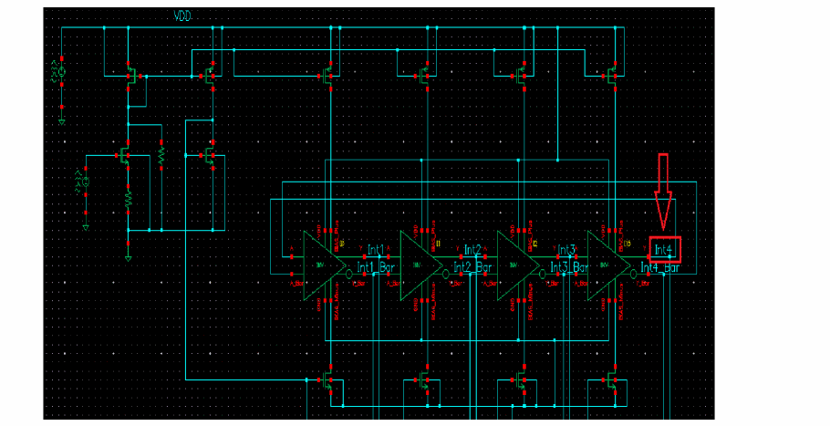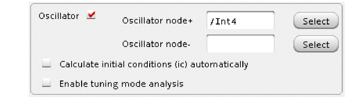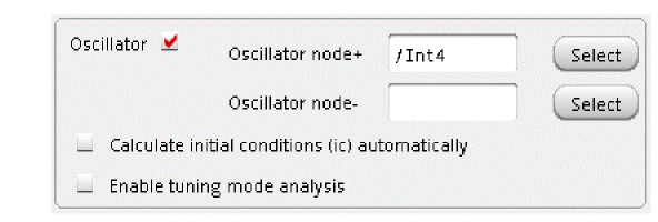 - In the Oscillator node+ field, click Select on the right. In the schematic, select the Int4 node. This oscillator node will be used by the simulator for the period calculation of the oscillations. It just needs to be a node that has the oscillator signal on it.