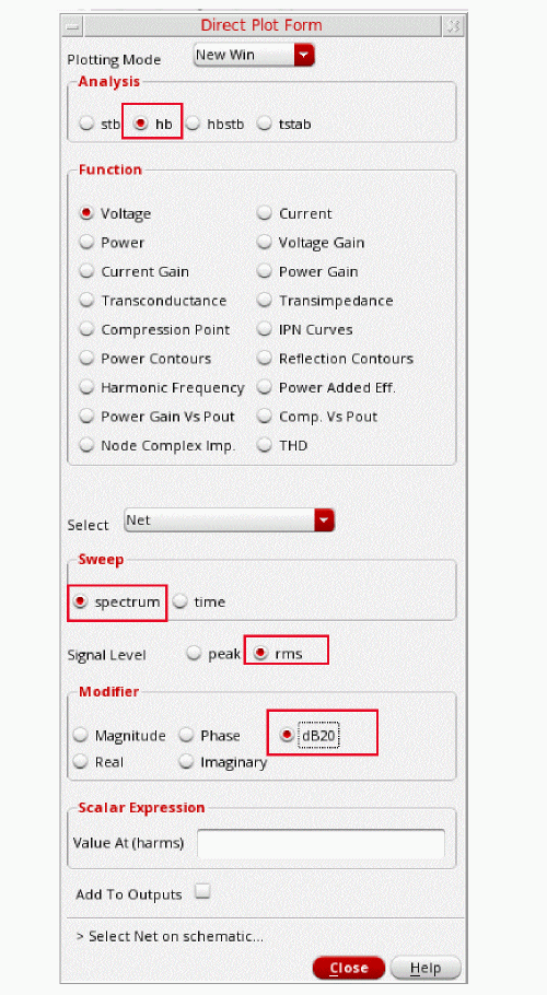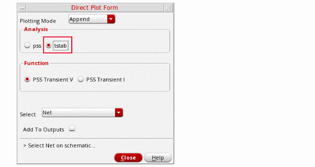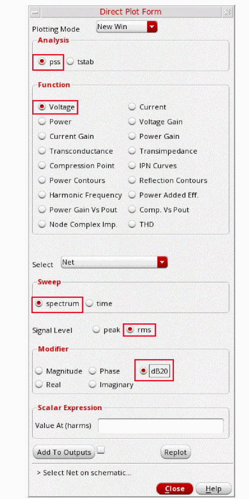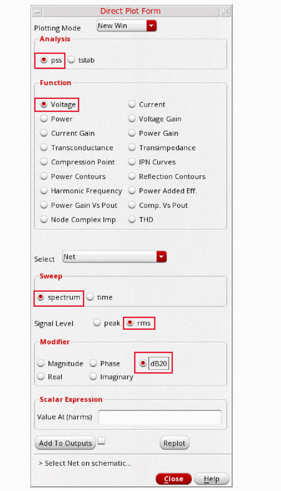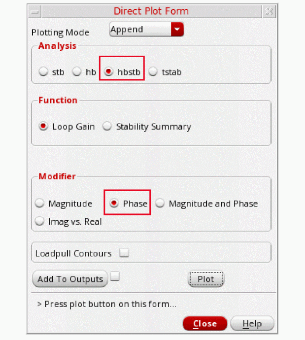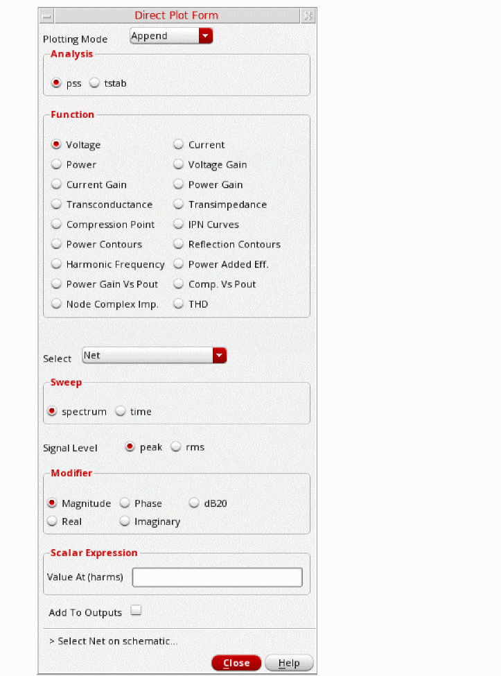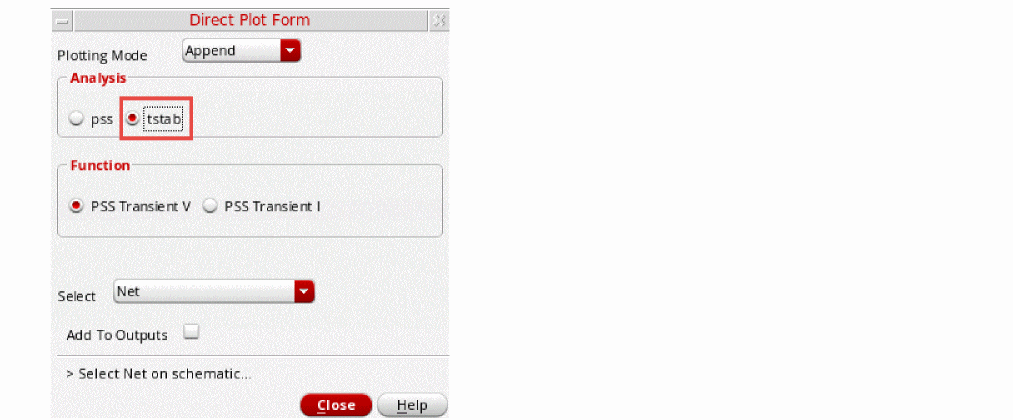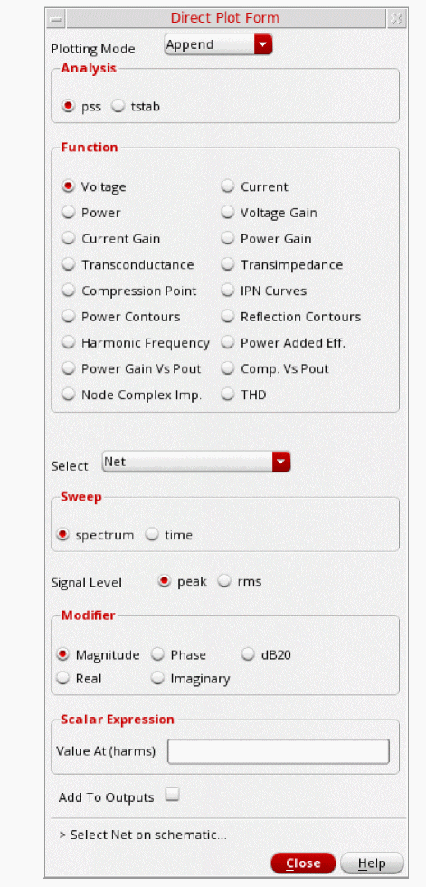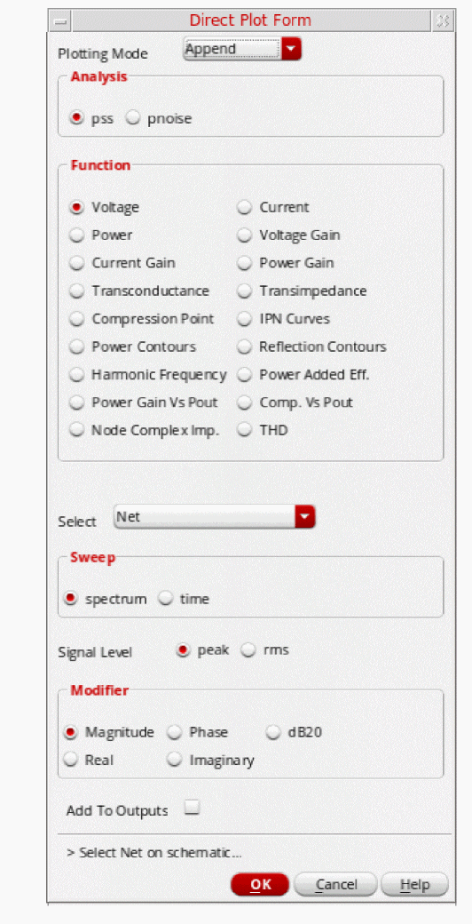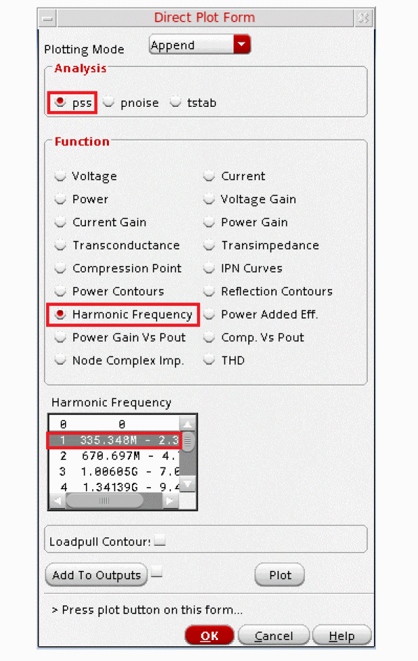 - In the Direct Plot Form, select pss in the Analysis section. This is selected by default.