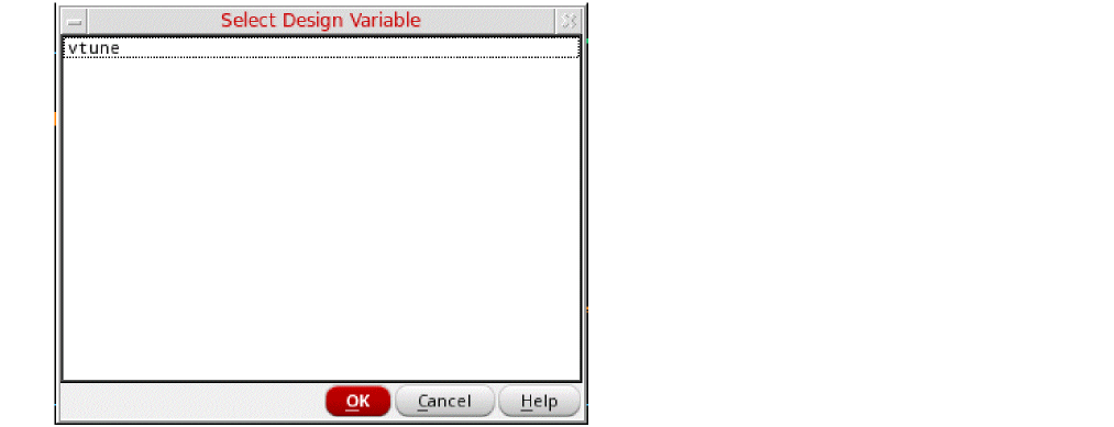 In the Select Design Variable window, select vtune.