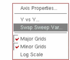 In the plot window, right-click on one of the numbers on the X Axis and select Swap Sweep Var from the context menu.