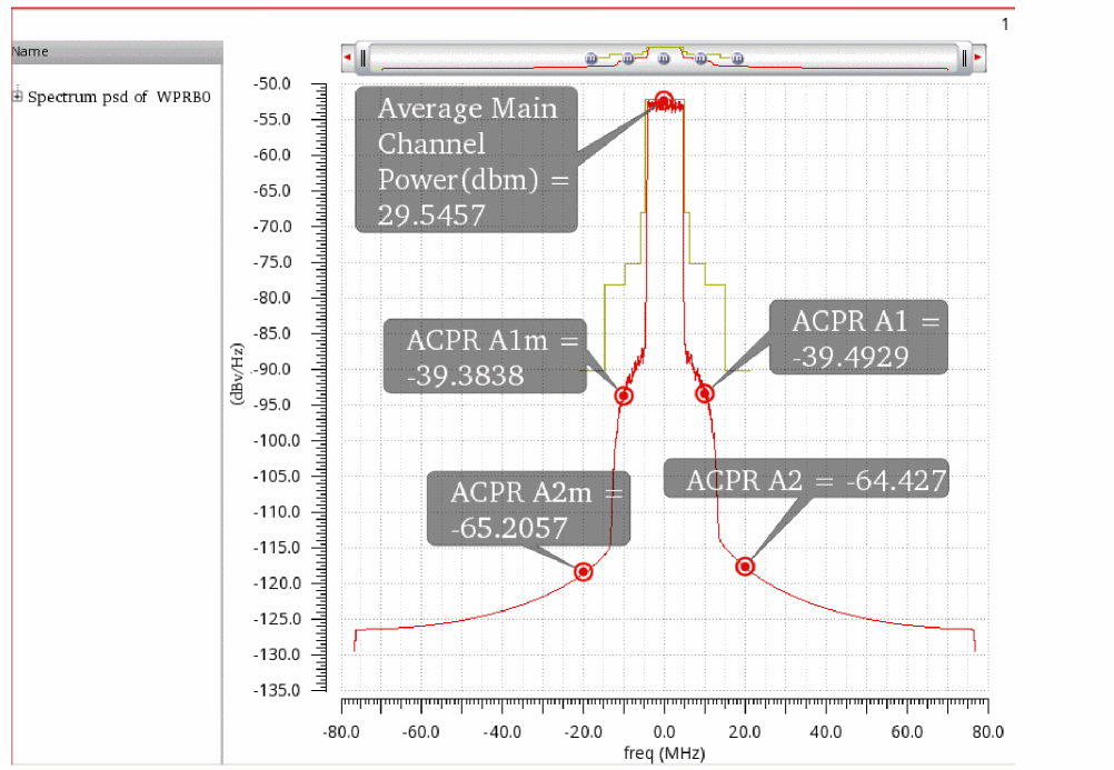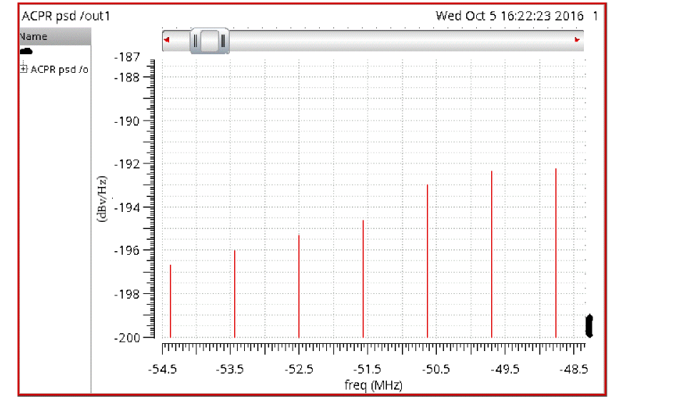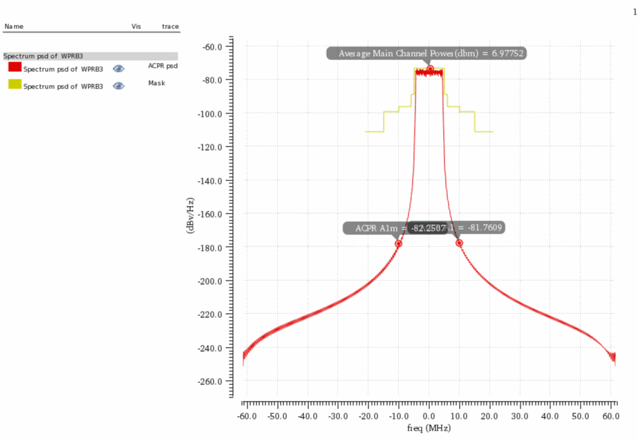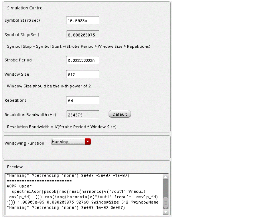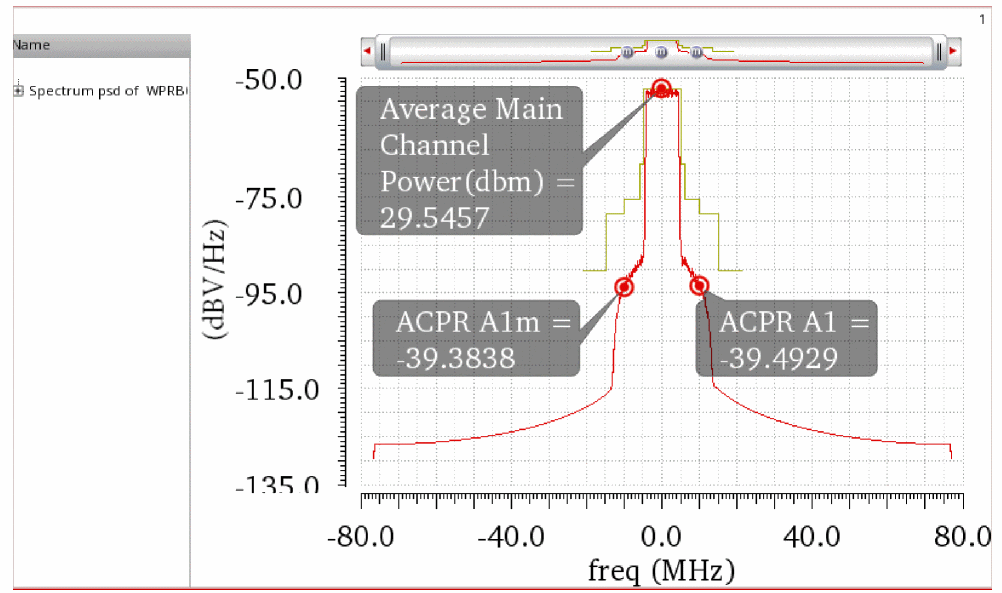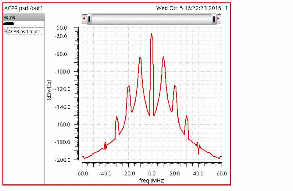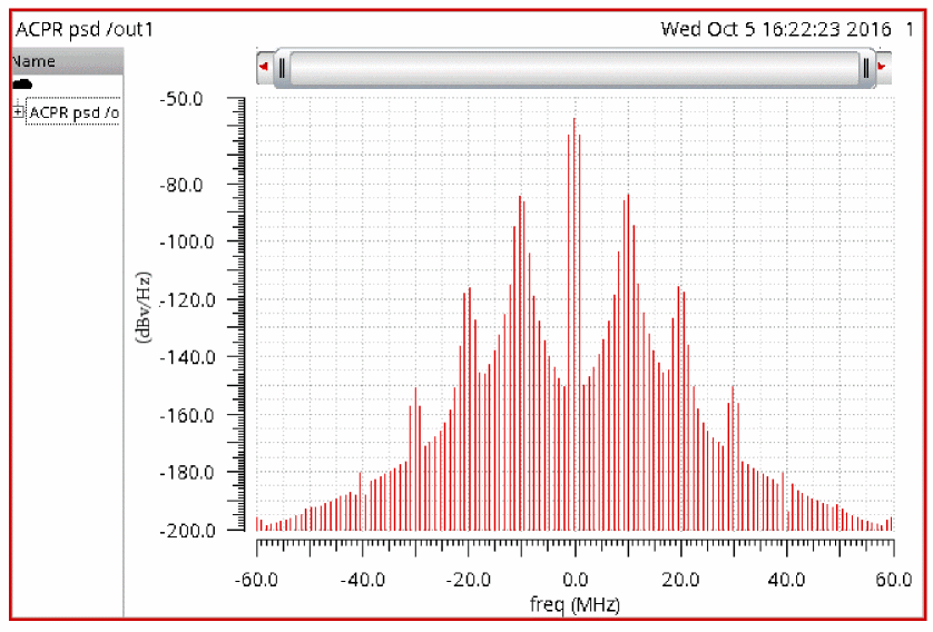 Note that for an accurate PSD and ACPR measurement, the data needs to be strobed at the time interval in the original I and Q modulation file. In harmonic balance, there does not need to be an integer number of skipped cycles.